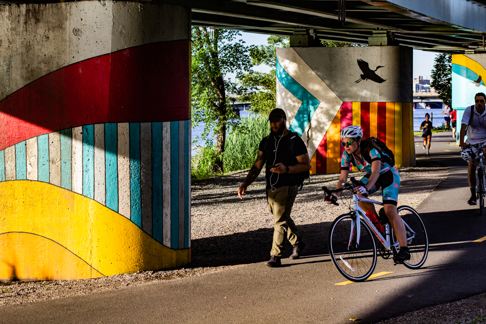 Photo of a biker on a sunny afternoon at the Charles River bike path on Monday 6/17/19